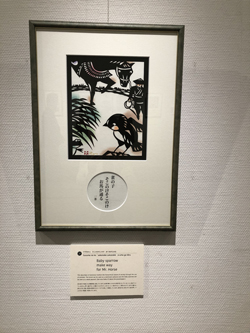 『英訳一茶100句集』から厳選された20点ほどの「きりえの原画」が展示されています。
