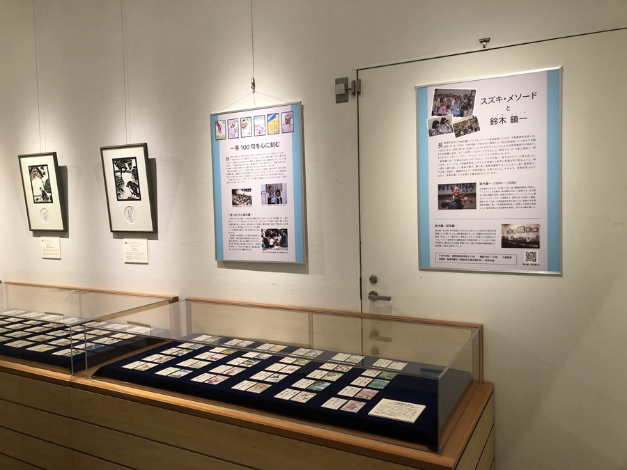 それと同時に、鈴木鎮一先生が一茶の句を選び"俳句かるた"を作成された経緯や「一茶百句俳句かるた」の展示、スズキ・メソード音楽教室についても大きく紹介されていました。